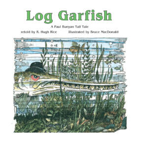 Giant Paul Bunyan shows the lumberjacks how to outwit the sneaky, hungry, logger-gobbling log garfish.