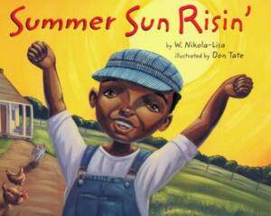 Set on a Texas farm in the 1950s and told in Nikola-Lisa’s distinctive and catchy style, this loving tribute to childhood, farm life, and family togetherness will resonate with readers of all backgrounds today. Sun-drenched paintings by Don Tate mirror the family’s daily activities and trace the sun as it travels across the sky from sunrise to sunset. The story also subtly introduces young readers to the subject of African American farmers.