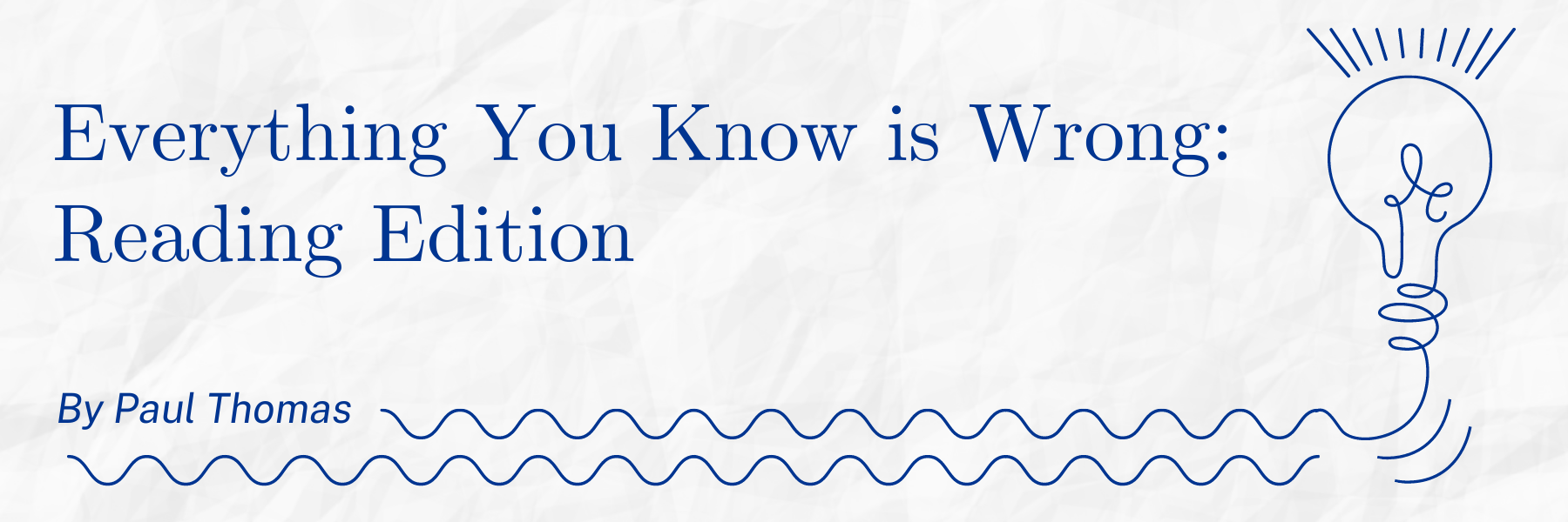 Originally published August 23, 2023. Republished with permission by Paul Thomas, author of the blog Radical Scholarship. https://radicalscholarship.com/2023/08/23/everything-you-know-is-wrong-reading-edition/