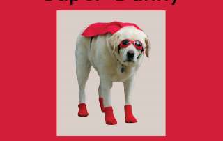 In Super Danny, Danny the dog collects some socks, goggles, and a red towel to use as a cape to create a very special costume … a very SUPER costume.